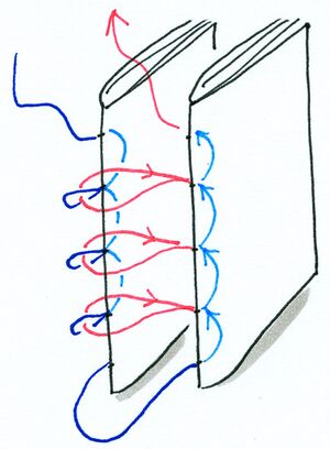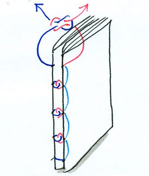 - More signatures can be added on indefinitely by looping back through the stitches in the previous signature.