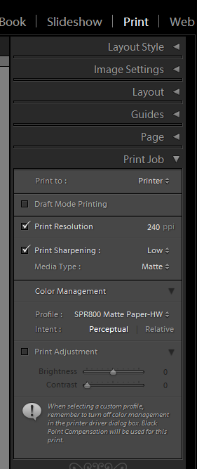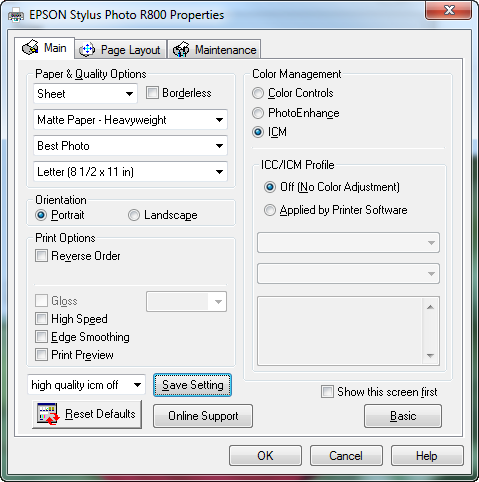 • Printer Profile: SPR800 Enhanced Matte /SPR800 Matte Paper-HW