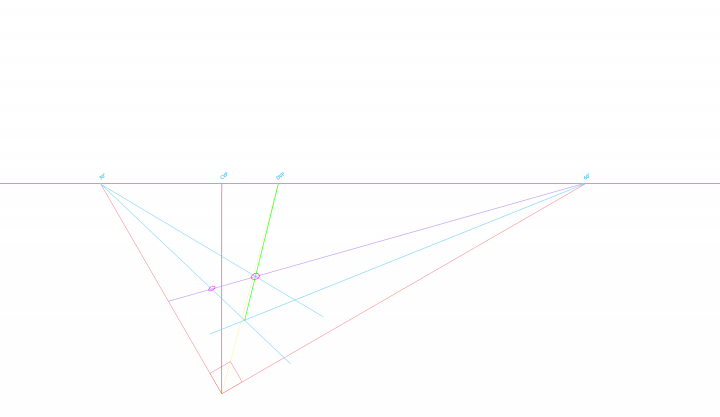2. Add vanishing points such that the lines from the vanishing points to the station point will intersect at a 90° angle.