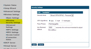 - Security Mode: Mixed WPA/WPA2 - Personal
