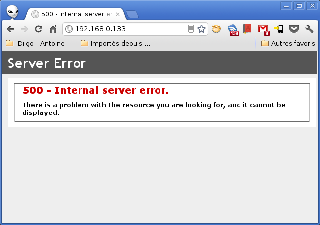 After the configuration, the website should be available through IIS. If this is not the case, you will probably get a 500 Error: